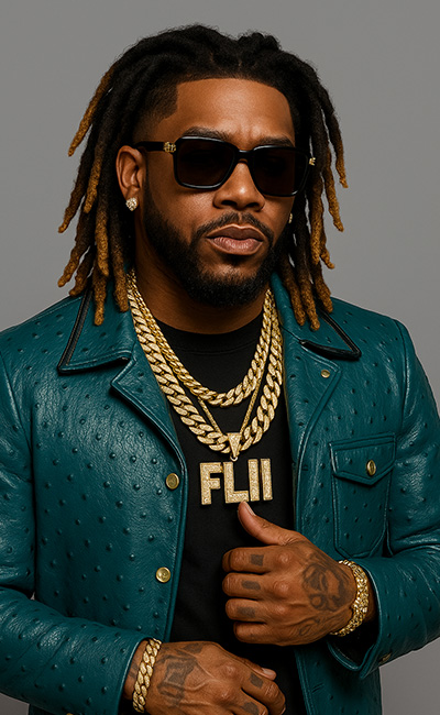With a voice that glides through syllables like smoke through neon, Staa Flii is the embodiment of luxury, wordplay, and southern swagger. Flii has carved out his own lane with a signature blend of melodic trap, throwback flair, and high-fashion energy.
